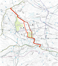 この構想は、中央自動車道国立府中インターチェンジ付近から、広域防災基地、横田基地を通り、圏央道青梅インターチェンジの総延長約21Kmを地下で結ぶものです。都道下や大深度地下を活用し、大型車も通行可能な直径13m口径の大型トンネル一本、或いはIT技術を活用し、フランスのA86号線のような規格の、4t車まで通行可能な直径6.6m口径の小型トンネルを二本建設するものです。